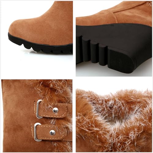 GUNIYIFS Womens Winter Snow Boots Wedge Fur Lined comfortable Boots Mid-Calf boots Boots cozy Slip On Suede Outdoor Shoes