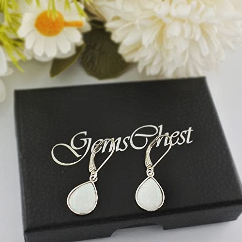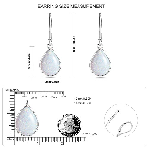 Dangle Earrings for Women Opal: 925 Sterling Silver Teardrop Leverback Earrings October Birthstone Tear Drop Waterdrop Created Earring Jewelry Birthday Gifts for Wife Grandma Girlfriend