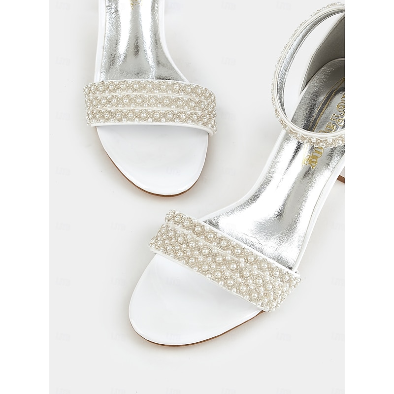 Why Choose Ivory Pearl-Embellished Open-Toe Heels with Ankle Strap for Women - Elegant Bridal Shoes?