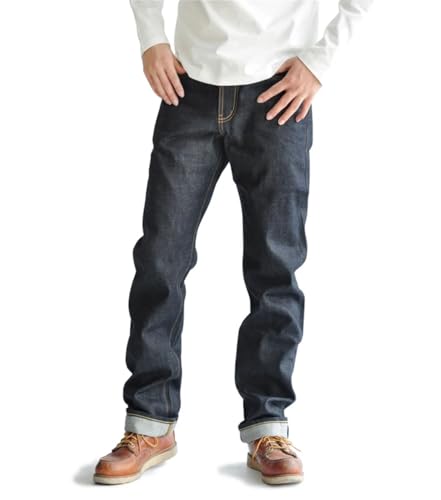 Men’S Casual Straight Fit Selvedge Raw Denim Full Length Jeans Zipper Fly Midweight Daily Wear Trousers